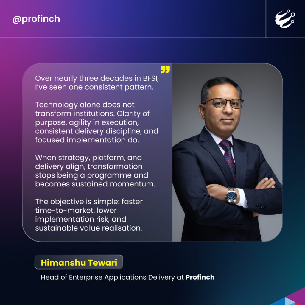 Profinch, a specialist global technology leader enabling transformation across the BFSI operating landscape, has appointed Himanshu Tewari as Head of Enterprise Applications Delivery as part of efforts to strengthen its enterprise applications strategy and support financial institutions undertaking large-scale modernisation programmes.